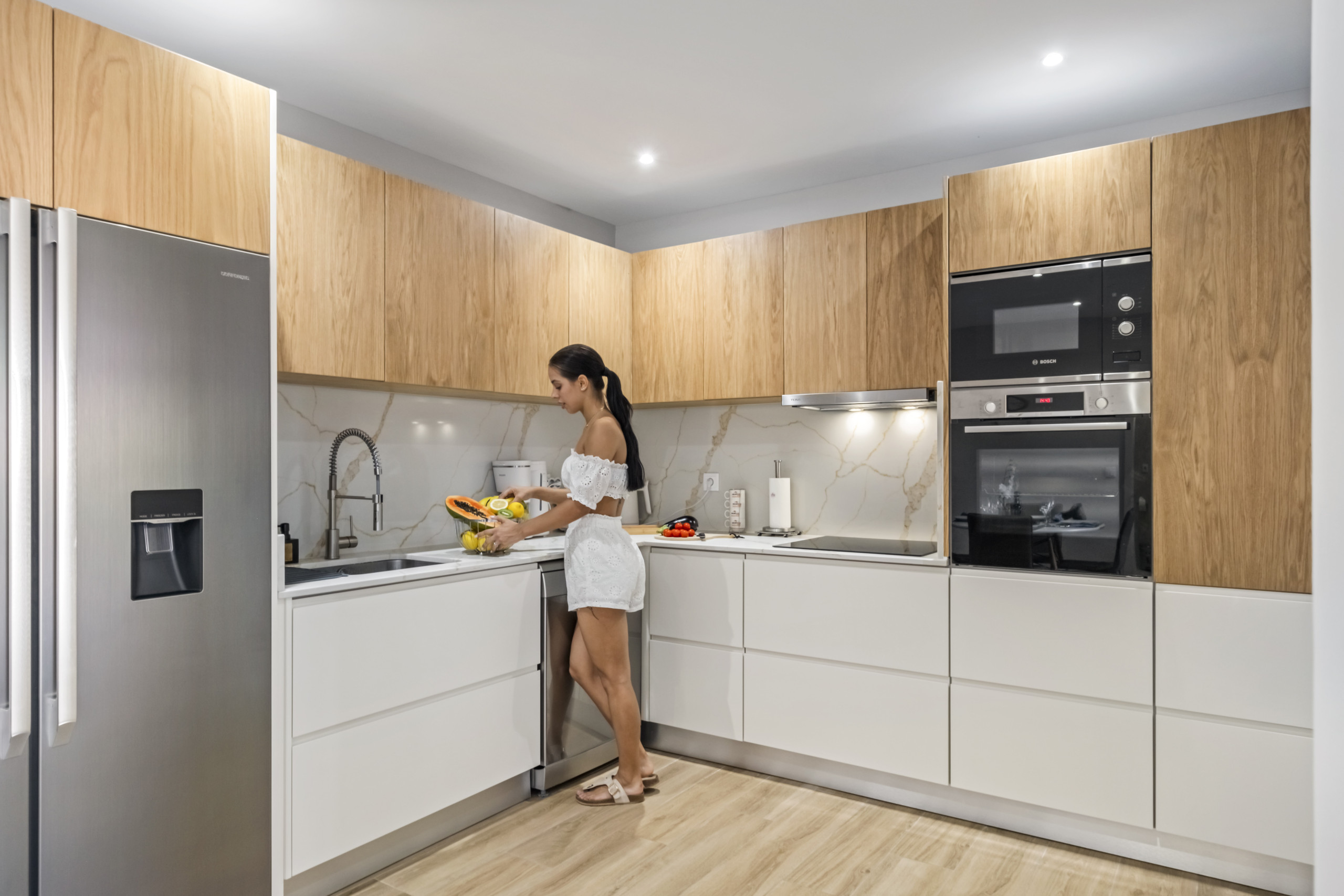 The accommodation is equipped with the following items: garden furniture, washing machine, dryer, barbecue, iron, internet (Wi-Fi), hair dryer, balcony, air-conditioned, private swimming pool, open-air parking the same building, 3 TVs.