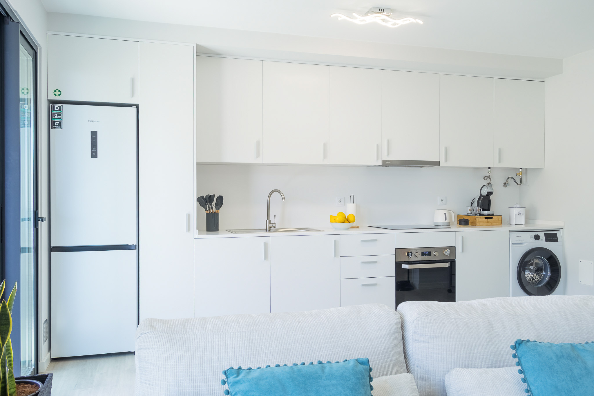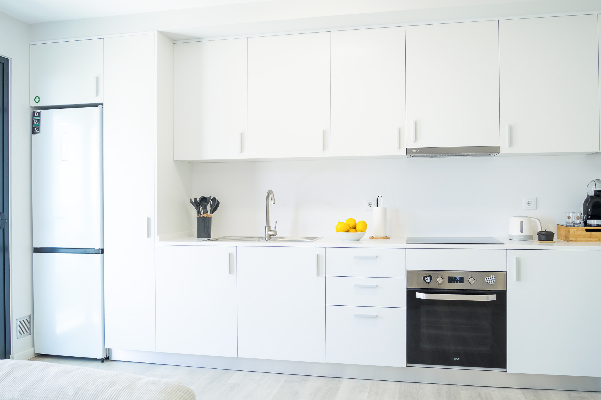 the kitchen, refrigerator, microwave, oven, freezer, dishes/cutlery, kitchen utensils, coffee machine, toaster, kettle and juicer are provided.